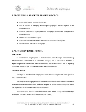 electromecánico del hospital de la comunidad naranjos, con la finalidad de mantener al