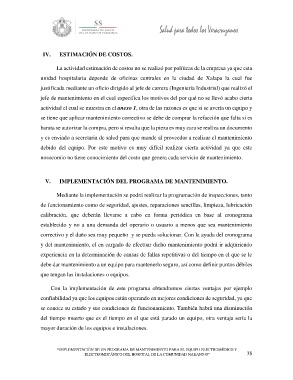 V. IMPLEMENTACIÓN DEL PROGRAMA DE MANTENIMIENTO.