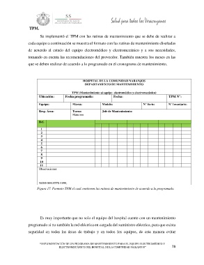 Figura 17. Formato TPM el cual contienen las rutinas de mantenimiento de acuerdo a lo programado.